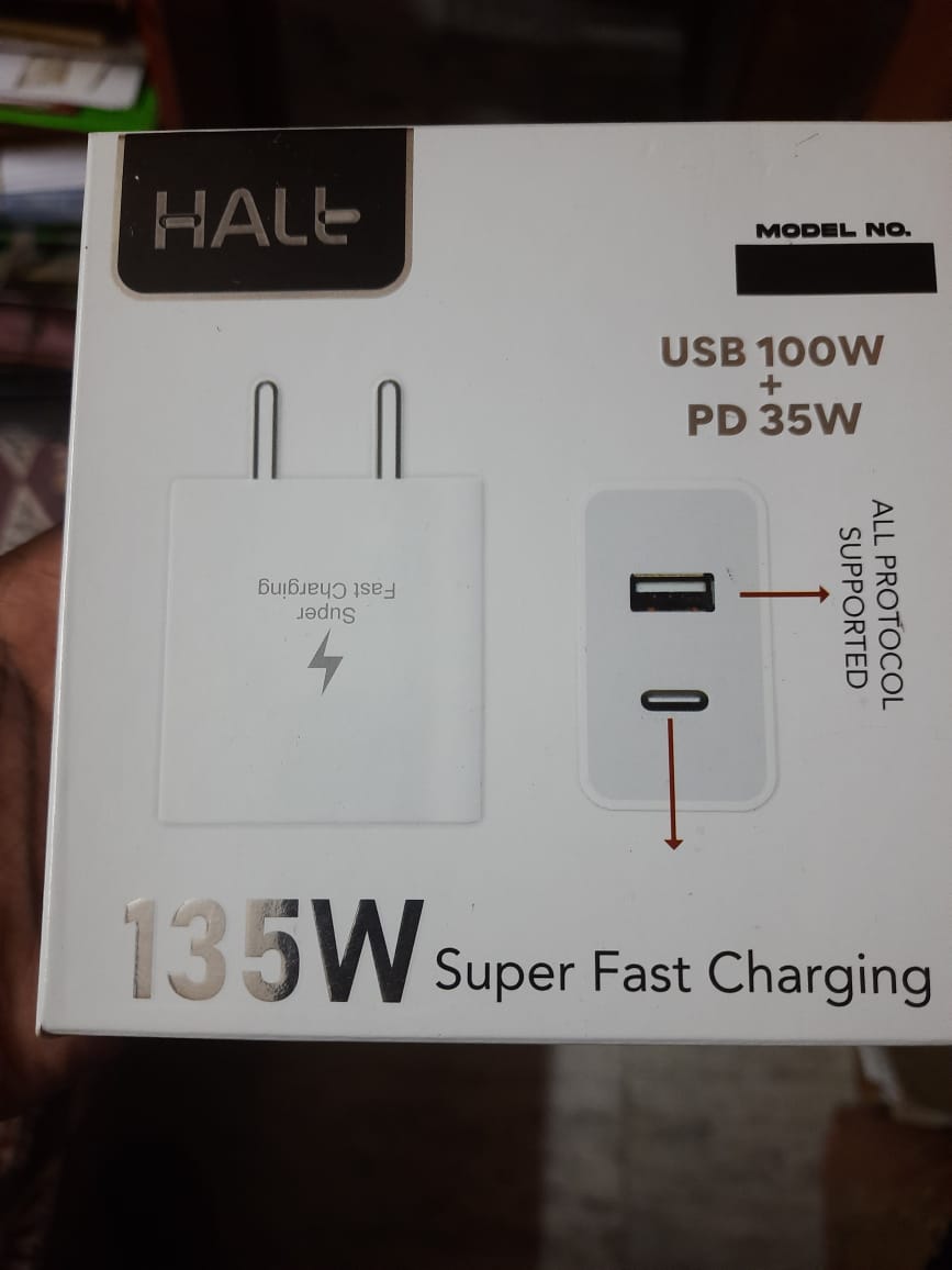 Unleash next-level charging power with the HALt 135W QC+PD Charger — the ultimate solution for all your high-speed charging needs. Designed with dual-port flexibility, this charger delivers 100W USB-A (USB to Type-C) output and 35W USB-C PD (C to C) output, allowing you to charge two devices simultaneously without sacrificing speed.